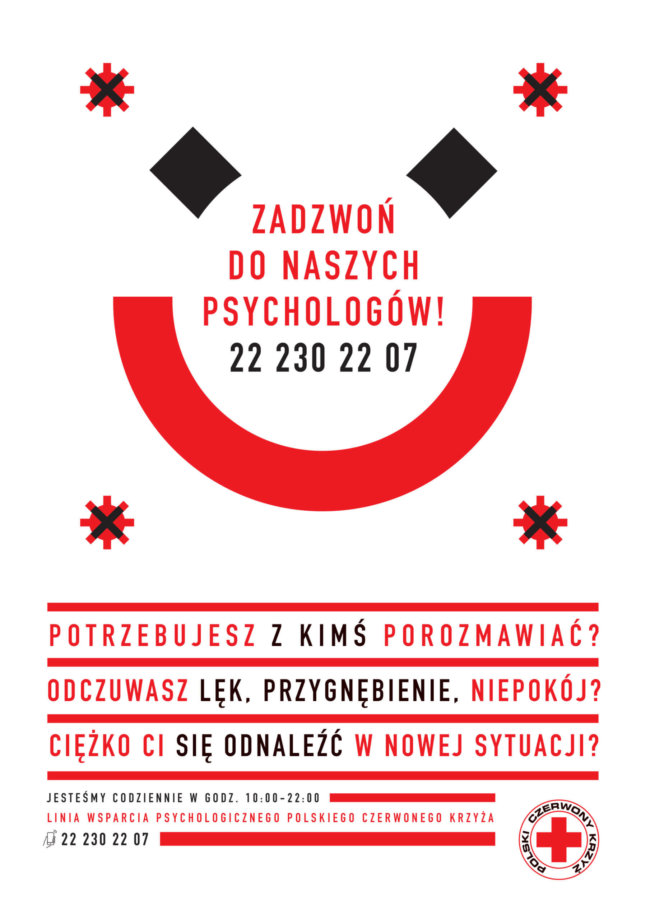 W związku z sytuacją epidemiologiczną uruchomiliśmy linię wsparcia psychologicznego (22 230 22 07). Będzie ona funkcjonowała codziennie w godzinach 10:00-22:00. Dyżury pełnić będą psycholodzy-wolontariusze. Działania linii wsparcia obejmują pierwszą pomoc psychologiczną, psychoedukację, rozmowę psychologiczną.